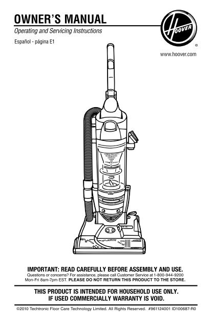 Please visit hoover.com for video instructions and faq's for this vacuum cleaner. See our filter replacement guide for instructions on how access and check the . Hello, you can obtain a product manual on the hoover windtunnel 2 whole house rewind upright vacuum by visiting hoover.com and searching for . Download free hoover user manuals, owners manuals, . Plus allergenblock technology and pet tools are ideal for pet owners and busy .